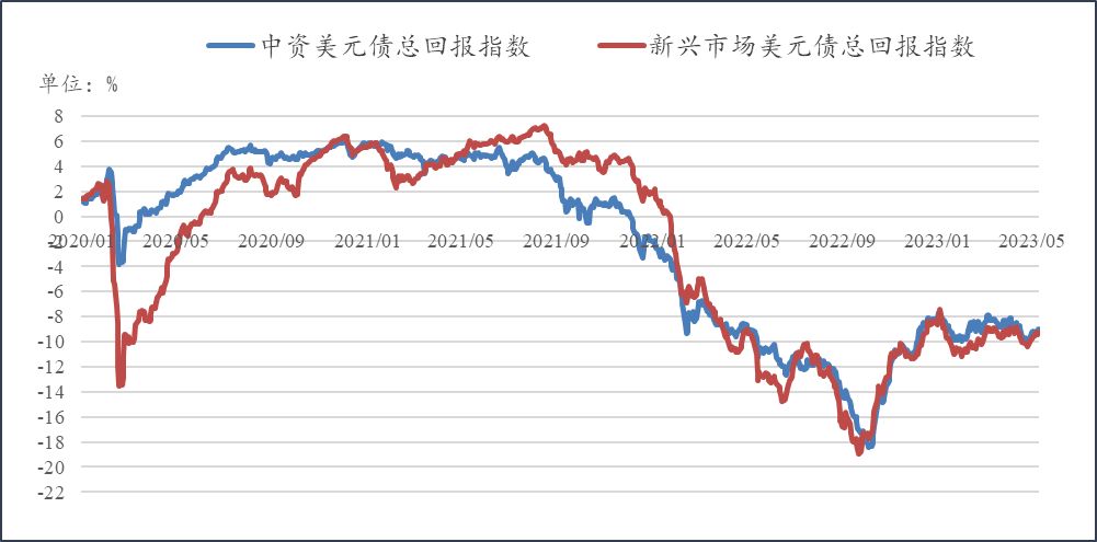 中资美元债总回报指数较上周涨0.4%,最新价报122.7343,新兴市场美元债总回报指数较上周涨0.36%,最新价报1098.304。